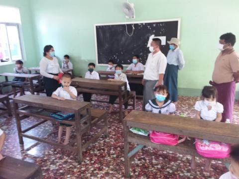 အခြေခံပညာကျောင်းများ စတင်ဖွင့်လှစ် သင်ကြားနေမှုအား လှိုင်မြို့နယ် စီမံအုပ်ချုပ်ရေးအဖွဲ့ဝင်များမှ သွားရောက် ကြည့်ရှုအားပေး