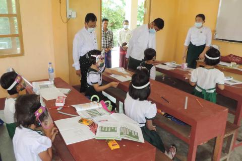 ကရင်ပြည်နယ်စီမံအုပ်ချုပ်ရေးကောင်စီအဖွဲ့ဝင်(၅) ဘားအံမြို့နယ်ရှိ အခြေခံပညာကျောင်းများ ပြန်လည်ဖွင့်လှစ်မှု အခြေအနေများအား သွားရောက်ကြည့်ရှု