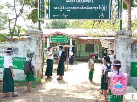 ဂွမြို့နယ်ရှိ အခြေခံပညာစာသင်ကျောင်းများ၌ ကိုဗစ်-၁၉ ရောဂါ ကာကွယ်ရေး လမ်းညွှန်ချက် များနှင့်အညီ ကျောင်းစတင်ဖွင့်လှစ်