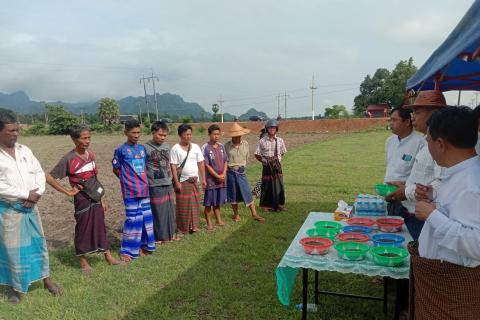 စိုက်ပျိုးရေးဦးစီးဌာနနှင့်မျိုးစေ့ထုတ်သမဝါယမအသင်းတို့မှ ပူးပေါင်းဆောင်ရွက် သည့် ပိုက်ဆံလျှော် ထည့်သွင်းခြင်း သရုပ်ပြပွဲပြူလုပ်