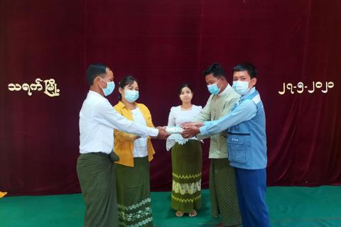 လေဘေးသင့်ပြည်သူများအား ဆန်ရိက္ခာဖိုးနှင့် အိမ်ဆောက်ပစ္စည်းဖိုး ထောက်ပံ့ငွေများ ပေးအပ်
