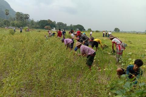 ဆီထွက်သီးနှံ နှမ်းမျိုးစေ့ထုတ်စိုက်ခင်းဖြစ်သည့် စမုံနှမ်းနက်မျိုးနွေနှမ်းအား စုပေါင်းရိတ်သိမ်း