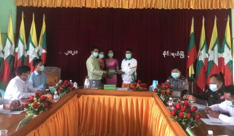 မိုးသက်လေပြင်းတိုက်ခတ်ပြီး မိုးသီးများကြွေကျမှုကြောင့် ပျက်စီးသွားသော အိမ်ထောင်စု ၅၃ စုအတွက် ထောက်ပံ့ငွေပေးအပ်
