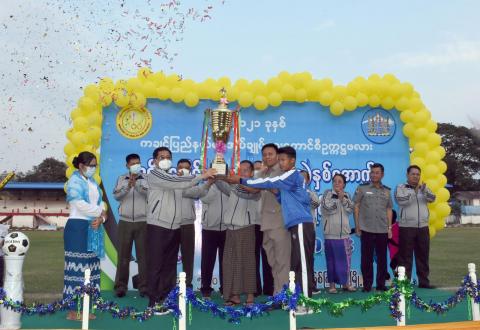 ကချင်ပြည်နယ်စီမံအုပ်ချုပ်ရေးကောင်စီဥက္ကဋ္ဌဖလား ခရိုင်ပေါင်းစုံအသက်(၂၁)အောက် အမျိုးသားဘောလုံးပြိုင်ပွဲ နောက်ဆုံးဗိုလ်လုပွဲနှင့် ဆုချီးမြှင့်ပွဲကျင်းပ…