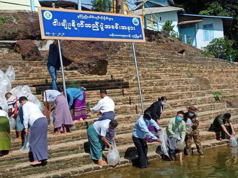 မုဒုံမြို့နယ် မြင်းနှစ်ကောင်ကန်နှင့် ကန်ကလေးကန်အတွင်းသို့ ငါးသားပေါက်ကောင်ရေ (၄၀၀၀၀) စိုက်ထည့်