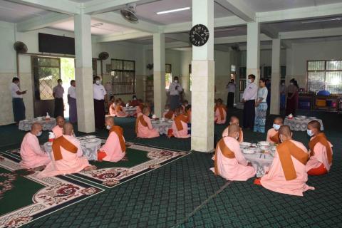 မန္တလေးတိုင်းဒေသကြီး စီမံအုပ်ချုပ်ရေးကောင်စီ၏ စီစဉ်ကြီးကြပ်မှုဖြင့် မန္တလေးမြို့ပေါ်ရှိ ဘုန်းတော် ကြီးကျောင်းများမှ သံဃာတော်များနှင့် သီလရှင်ကျောင်းများမှ သီလရှင်ဆရာလေးများကို နေ့ဆွမ်းများ ဆပ်ကပ်လှူဒါန်းလျက်ရှိရာ မေလ(၁၃)ရက်နေ့တွင် မဟာအောင်မြေမြို့နယ်၊ မဟာမြိုင် (၁)ရပ်ကွက် ၃၈လမ်း၊ ၇၁×၇၂ လမ်းကြားရှိ ဗောဓိမဏ္ဍိုင်ပရိယတ္တိ သီလရှင်စာတိုက်ရှိ သီလရှင်များအား နေ့ဆွမ်း ဆက်ကပ်လှူဒါန်းခဲ့ ကြောင်း သိရှိရသည်။