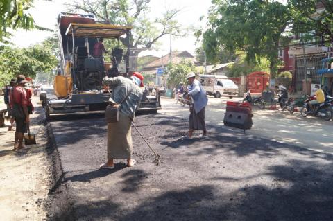 လယ်ဝေးမြို့နယ်အတွင်း ပြည်သူများအဆင်ပြေစွာသွားလာနိုင်စေရန်အတွက် AC နိုင်လွန်ကတ္တရာလမ်းခင်းခြင်း လုပ်ငန်းများဆောင်ရွက်