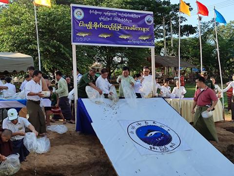 လင်းခေးမြို့ နမ့်တိန်းချောင်းထဲသို့ ငါးမျိုးသားပေါက်ကောင်ရေ(၇ဝဝဝဝ)စိုက်ထည့်ပွဲ ကျင်းပ