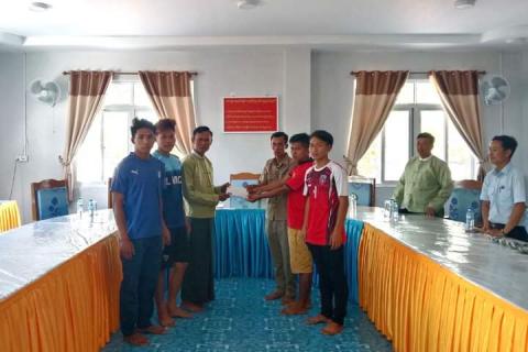 မိုင်းဆတ်မြို့၌ ဘောလုံးအောင်နိုင်ရေးအလံနှင့် ထောက်ပံ့ငွေပေးအပ်ပွဲ ကျင်းပ