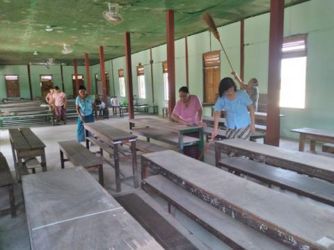 ပဲခူးခရိုင်၊ ကျောက်တံခါးမြို့နယ်၌ အခြေခံပညာကျောင်းများ ဖွင့်လှစ်နိုင်ရေးအတွက် မေ ၁၂ ရက်နေ့ နံနက်ပိုင်းက ပညာရေးဌာနဝန်ထမ်းများက ပြင်ဆင်ဆောင်ရွက်မှုများကို စုပေါင်းပြုလုပ် ခဲ့ကြသည်။
