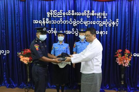 မွန်ပြည်နယ်စီမံအုပ်ချုပ်ရေးကောင်စီဥက္ကဋ္ဌ ပြည်နယ်အတွင်းရှိ အရန်မီးသတ်တပ်ဖွဲ့ဝင်များ တွေ့ဆုံပွဲနှင့် တူညီဝတ်စုံများ ပေးအပ်ပွဲအခမ်းအနားသို့တက်ရောက်