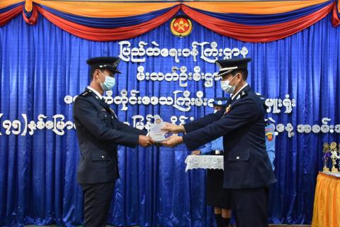 (၇၅)နှစ်မြောက် စိန်ရတု မြန်မာနိုင်ငံမီးသတ်တပ်ဖွဲ့နေ့ အခမ်းအနားကို ဧရာဝတီတိုင်းဒေသကြီး၊ မီးသတ်ဦးစီးမှူးရုံး၌ ယမန်နေ့နံနက်က ကျင်းပရာ တိုင်းဒေသကြီး မီးသတ်ဦးစီးမှူး ဦးအောင်ဆွေဝင်းက မြန်မာနိုင်ငံမီးသတ်တပ်ဖွဲ့နေ့ မိန့်ခွန်းပြောကြားပြီး (၇၅)နှစ်မြောက် စိန်ရတုအထိမ်းအမှတ် Video Clip အား ပြသခြင်း၊ ပြည်သူ့ဝန်ထမ်းကောင်း တံဆိပ်ရရှိသူ (၈)ဦး၊ စံပြမီးသတ်စခန်းဆုများ၊ ကဏ္ဍအသီးသီးမှ ထူးချွန်ဆုရရှိခဲ့သည့် တပ်ဖွဲ့ဝင် (၁၅)ဦး တို့အား ဂုဏ်ပြုဆုများ ချီးမြှင့်သည်။