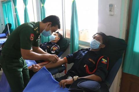(၇၅) နှစ်မြောက် မြန်မာနိုင်ငံမီးသတ်တပ်ဖွဲ့နေ့ကို ကြိုဆိုဂုဏ်ပြုသောအားဖြင့် မွန်ပြည်နယ် မီးသတ်တပ်ဖွဲ့ဝင်များမှ စုပေါင်းသွေးလှူဒါန်း