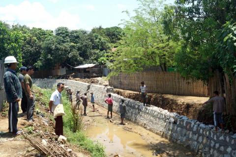 မိုင်းတုံမြို့၌ နမ့်ဟောင်ချယ်ချောင်းကမ်းပါး ရေတိုက်စားမှုကာကွယ်ရန် မြေထိန်းနံရံဆောင်ရွက်နေမှုအား ကွင်းဆင်းစစ်ဆေး