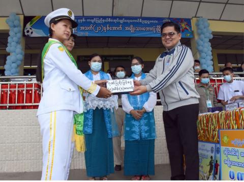 ကချင်ပြည်နယ်စီမံအုပ်ချုပ်ရေးကောင်စီဥက္ကဋ္ဌဖလား ခရိုင်ပေါင်းစုံအသက်(၂၁)နှစ်အောက် (အမျိုးသား) ဘောလုံးပြိုင်ပွဲ ဖွင့်ပွဲအခမ်းအနားကျင်းပ