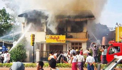 ပျဉ်းမနားမြို့နယ်တွင် Change Over အပူချိန်လွန်ကဲရာမှ တစ်ဆင့် သင်္ကန်းအရောင်းဆိုင်တစ်ခု မီးလောင်
