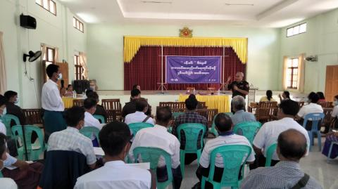 လှိုင်းဘွဲမြို့နယ်၌ ပန်းခင်းစီမံချက်နှင့်ပတ်သက်၍ ရပ်ကွက်/ကျေးရွာအုပ်စု အုပ်ချုပ်ရေးမှူးများနှင့် စာရေးဝန်ထမ်းများအား ဆောင်ရွက်မည့်လုပ်ငန်းစဉ် အဆင့်ဆ…