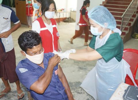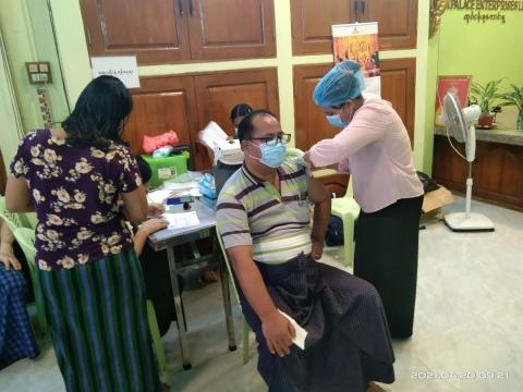 ရခိုင်ပြည်နယ် မောင်တောမြို့၌ ကုန်တင်ကုန်ချ အလုပ်သမား (၁၁၁) ဦးအား ပထမအကြိမ် ကိုဗစ်-၁၉ ကာကွယ်ဆေး ထိုးနှံပေး