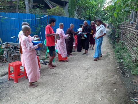 ရခိုင်ပြည်နယ်၊ မြောက်ဦးခရိုင်၊ မြောက်ဦးမြို့ရှိ ရတနာ့မာန်အောင်တောရဓမ္မရိပ်သာ ဘုန်းတော်ကြီး ကျောင်းအတွင်း၌ သီတင်းသုံးနေထိုင်တော်မှုကြကုန်သော ဆရာတော်သံဃာ တော်များ၊ သာသနာ့နွယ်ဝင် သီလရှင်များနှင့် ယောဂီများ တရားကျင့်ကြံပွားများအားထုတ်ရာ၌ ဆွမ်းအဆင်ပြေစေရေးအတွက် မြို့ပေါ်ရပ်ကွက်နေ ပြည်သူများမှ ယမန်နေ့ ညနေ ၄ နာရီက ဆွမ်းဆန်စိမ်းလောင်းလှူ ကုသိုလ်ဒါနပြုလောင်းလှူခဲ့ကြောင်း သိရသည်။