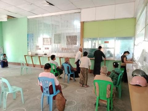 မကွေးတိုင်းဒေသကြီး၊ မကွေးခရိုင်၊ နတ်မောက်မြို့ မြန်မာ့စီးပွားရေးဘဏ်မှ ကိုဗစ်-၁၉ ရောဂါ ထိန်းချုပ်ရေး ကာလအတွင်း ပင်စင်စားများအတွက် ပင်စင်များကို ယမန်နေ့မှ စတင်၍ လူစုလူဝေး မဖြစ်ပေါ်စေရေး ထုတ်ပေးလျက်ရှိသည်။