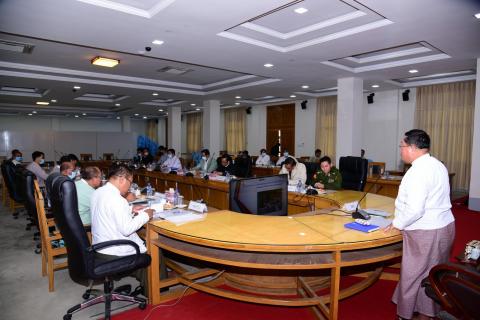 ကိုဗစ်-၁၉ ဆိုင်ရာ ထိန်းချုပ်ရေးနှင့် ပြည်နယ်၊ ခရိုင်၊ မြို့နယ်များရှိ ဆေးရုံများ ရာနှုန်းပြည့် ပြန်လည်ဖွင့်လှစ်နိုင်ရေး လုပ်ငန်းညှိနှိုင်း အစည်းအဝေးက…