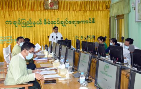 ကချင်ပြည်နယ်စီမံအုပ်ချုပ်ရေးကောင်စီက ကြီးမှူးကျင်းပမည့် ၁၃၈၃ ခုနှစ်၊ မြန်မာနှစ်ဆန်း တစ်ရက်နေ့တွင် ဇီဝိတဒါနငါးလွှတ်ပွဲ၊ သက်ကြီးပူဇော်ပွဲနှင့် အန္တရာယ်ကင်း ပရိတ်တရားတော်နာယူပွဲများ အောင်မြင်စွာကျင်းပနိုင်ရေးအတွက် ညှိနှိုင်းအစည်းအဝေးကို ယမန်နေ့ညနေ ၄ နာရီက ပြည်နယ်စီမံအုပ်ချုပ်ရေးကောင်စီရုံး၊ အစည်းအဝေးခန်းမ၌ ကျင်းပပြုလုပ်ခဲ့သည်။