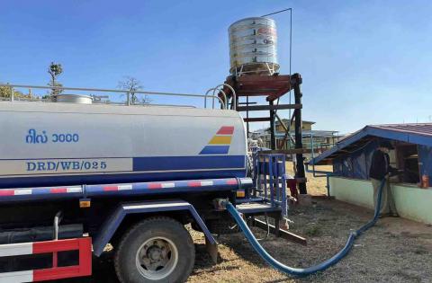 ဆီဆိုင်၌ နွေရာသီရေရှားပါးကျေးရွာအား သောက်သုံးရေများ ကြိုတင်ဖြည့်ဆည်းပေး