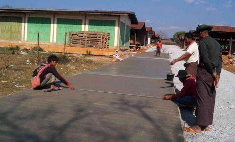 ဆီဆိုင်၌ ဘန်းယဉ်ဈေးကွန်ကရစ်လမ်းခင်းခြင်းလုပ်ငန်းဆောင်ရွက်နေမှုအား ကွင်းဆင်းစစ်ဆေး