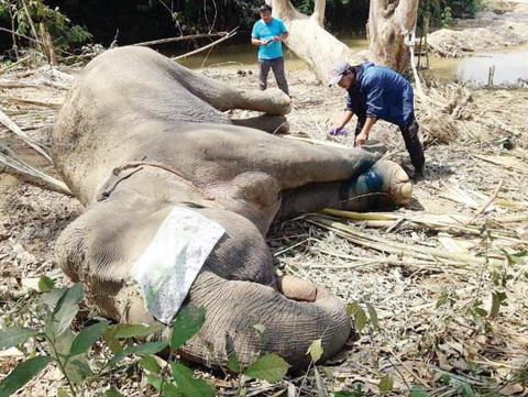 ကျော့ကွင်းမိပြီး ဒဏ်ရာရနေသည့် တောဆင်ရိုင်းတစ်ကောင်ကို ဆေးကုသပေးကာ ပြန်လွှတ်ပေး
