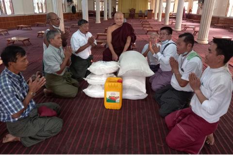 မွန်ပြည်နယ်အစိုးရအဖွဲ့မှလှူဒါန်းပေးသည့် ဆန်၊ဆီ၊ဆားများကို သံဖြူဇရပ်မြို့ဘုန်းတော်ကြီးကျောင်းနှင့်သီလရှင်စာသင်တိုက်များသို့ပို့ဆောင်ဆက်ကပ်
