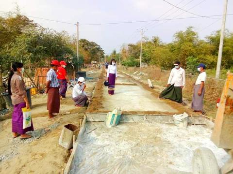 သုံးခွမြို့နယ်တွင် မြစိမ်းရောင်စီမံကိန်းအတိုးရငွေဖြင့် ကျေးရွာတွင်းကွန်ကရစ်လမ်းခင်းခြင်းလုပ်ငန်း ဆောင်ရွက်နေမှု အား ကွင်းဆင်းစစ်ဆေး