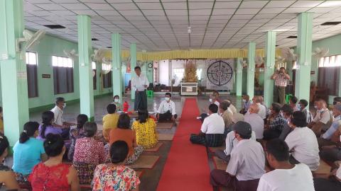 ရန်ကုန်တိုင်းဒေသကြီး၊ တောင်ပိုင်းခရိုင်၊ ကွမ်းခြံကုန်းမြို့နယ်တွင် ရပ်ကွက်/ကျေးရွာ အုပ်ချုပ် ရေးမှူးများ ရွေးချယ်မှုနှင့် ပတ်သက်ပြီး ရပ်ကွက်(သို့မဟုတ်) ကျေးရွာအုပ်စု အုပ်ချုပ်ရေးဆိုင်ရာ နည်းဥပဒေများကို ဒုတိယအကြိမ် ပြင်ဆင်သည့် နည်းဥပဒေများအား ပြည်သူများ သိရှိနိုင်ရန်နှင့် ရွေးချယ်မှုလုပ်ငန်းစဉ် အဆင့်ဆင့်ကို ဌာနဆိုင်ရာ ကြီးကြပ်ရေးအဖွဲ့(၈) ဖွဲ့မှ ရပ်ကွက်/ကျေးရွာ အုပ်စုများသို့ ကွင်းဆင်း၍ အသိပညာပေးခြင်းလုပ်ငန်းကို ဆောင်ရွက်လျက်ရှိရာ ယမန်နေ့ မွန်းလွဲ ၂ နာရီက မြို့မပိုင်းရပ်ကွက် အရှေ့ကျောင်းကြီးတိုက် သာသနာ့ဗိမာန် ဓမ္မာရုံတော်ကြီး တွင် ကြီးကြပ်ရေးအဖွဲ့ (၁) မှ ရပ်ကွက်နေပြည်သူများ နှင့် တွေ့ဆုံခဲ့ကြောင်း သိရသည်။