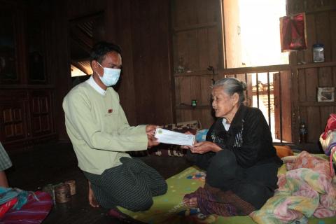 ကရင်ပြည်နယ်၊ ဘားအံခရိုင်၊ ရှမ်းရွာသစ်မြို့အတွင်းရှိ အသက်(၈၅)နှစ်နှင့်အထက် သက်ကြီးဘိုးဘွား (၆၉)ဦးအတွက် လူမှုဝန်ထမ်းကယ်ဆယ်ရေးနှင့် ပြန်လည်နေရာချ ထားရေး ဝန်ကြီးဌာန လူမှုဝန်ထမ်းဦးစီးဌာနမှ လူမှုရေးပင်စင် ထောက်ပံ့ငွေ တစ်ဦးလျှင် (၁၀၀၀၀)ကျပ်နှုန်းဖြင့် ၂၀၂၀-၂၀၂၁ဘဏ္ဍာရေးနှစ်၊ အောက်တိုဘာလ၊ နိုဝင်ဘာလနှင့် ဒီဇင်ဘာလ (ပထမ) (၃)လပတ်အတွက် (၃၀၀၀၀)ကျပ်စီအား ယနေ့နံနက်(၁၀)နာရီအချိန်က ရှမ်းရွာသစ်မြို့ပေါ် အမှတ်(၁)ရပ်ကွက်တွင် မြို့အုပ်ချုပ်ရေးမှူး ဦးနိုင်ဝင်းအောင်နှင့် တာဝန်ရှိသူတို့က အိမ်တိုင်ရာရောက် လိုက်လ ထောက်ပံ့ပေးအပ်ခဲ့ကြောင်း သိရသည်။