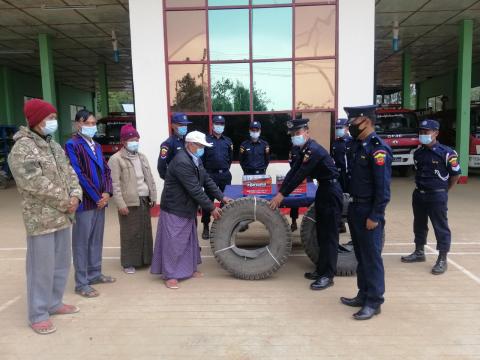 မီးသတ်ယာဉ်ကြံ့ခိုင်မှုရှိစေရန် ကန်ပက်လက်မြို့မိမြို့ဖအဖွဲ့မှ ကားတာယာနှင့် ဘက်ထရီများ လှူဒါန်း
