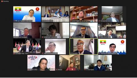 (၈၈)ကြိမ်မြောက် အာဆီယံစီးပွားရေး အကြံပေးကောင်စီ ASEAN-BAC အစည်းအဝေးကို ယမန်နေ့ မွန်းလွဲ ၁၂ နာရီ ၃၀ မိနစ်အချိန်တွင် ကျင်းပခဲ့ရာ ကုန်သည်စက်မှုအသင်းချုပ်ဥက္ကဋ္ဌ ဦးဇော်မင်းဝင်း၊ ဒုတိယဥက္ကဋ္ဌ ဦးသောင်းတင်၊ ဗဟိုအလုပ်အမှု ဆောင် ဦးမိုးကျော်တို့ ပါဝင်တက်ရောက်ဆွေးနွေးခဲ့သည်။
