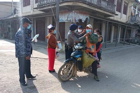 မိုင်းငေါ့မြို့၌ ပြည်သူများအနေဖြင့် (Mask) များ တပ်ဆင်ပြီးမှ အပြင်ထွက်သွားလာရေး Mask Campaign ပြုလုပ်