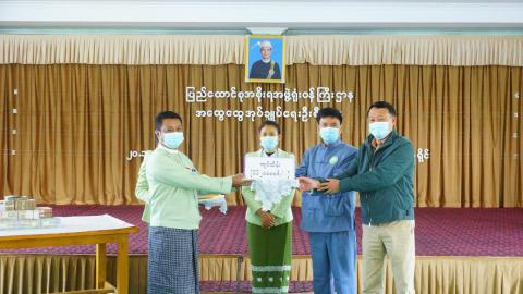 ရှမ်းပြည်နယ်(မြောက်ပိုင်း)၊ မူဆယ်မြို့၊ နယ်စပ်ဒေသ၌ ကိုဗစ်-၁၉ ရောဂါ ကာကွယ်ဆေး ဝယ်ယူနိုင်ရေးအတွက် မူဆယ် စီးပွားရေးလုပ်ငန်းရှင်များအသင်းမှ သိန်းပေါင်း (၆၆၂)သိန်း ပေးအပ်လှူဒါန်းခြင်း အခမ်းအနားကို ယနေ့ နံနက်(၁၀)နာရီ အချိန်ခန့်က မူဆယ်ခရိုင်၊ ခရိုင်/မြို့နယ် စုပေါင်းအစည်းအဝေးခန်းမ၌ ကျန်းမာရေး လမ်းညွှန်ချက်နှင့်အညီ ပြုလုပ်ကျင်းပသည်။