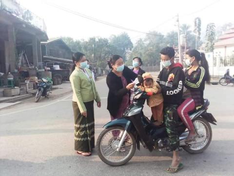 ကယားပြည်နယ်၊ လွိုင်ကော်ခရိုင်၊ ဒီးမော့ဆိုမြို့နယ်တွင် အသက်ရှူလမ်းကြောင်းဆိုင်ရာ ကိုဗစ်-၁၉ ရောဂါ ကူးစက်မှု မဖြစ်ပေါ်စေရေးအတွက် နေအိမ်ပြင်ပသို့ ထွက်ခွာသွားလာနေသော ပြည်သူများအား နှာခေါင်း စည်း တပ်ဆင်ခြင်း ရှိ/မရှိ ကြီးကြပ်ဆောင်ရွက်ခြင်းကို ယနေ့ နံနက် ၉ နာရီက ဒီးမော့ဆိုမြို့ အခြေခံပညာ အထက်တန်းကျောင်းရှေ့၌ ဆောင်ရွက်ခဲ့ကြောင်း သိရသည်။