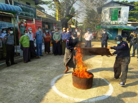 ကျုံပျော်မြို့ မြို့မဈေးအတွင်း မီးဘေးကြိုတင်ကာကွယ်ရေး ဇာတ်တိုက်လေ့ကျင့်မှုပြုလုပ်