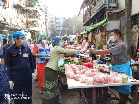 ကမာရွတ်မြို့နယ်အတွင်းရှိ ကိုဗစ်-၁၉ ရောဂါ ကာကွယ်ထိန်းချုပ်ရေးအတွက် အမှတ် ၃ ရပ်ကွက်ရှိ အိမ်ထောင်စုများနှင့် လှည်းတန်းစျေး၊ လမ်းသွားလမ်းလာ ပြည်သူများအား…