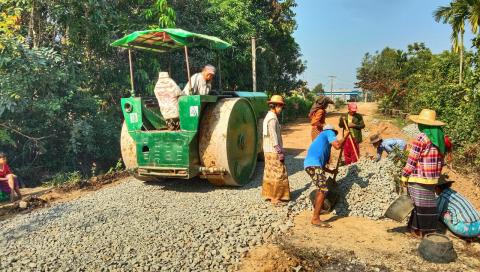 ပြည်သူများသွားလာမှု အဆင်ပြေစေရန် ကျုံပျော်မြို့၊ တေဇရပ်ကွက် ဘုရင့်နောင်(၂) လမ်းကို ကျောက်ချောလမ်းခင်း ဆောင်ရွက်