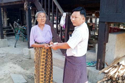ပုဗ္ဗသီရိမြို့နယ်၌ အသက်(၈၅)နှစ်အထက် ဘိုးဘွားများအား လူမှုရေးပင်စင်ထောက်ပံ့ငွေများ အိမ်တိုင်ရာရောက် ထောက်ပံ့ပေးအပ်