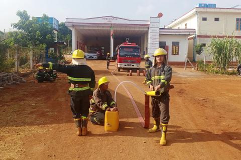 ဖယ်ခုံမြို့နယ် မီးသတ်တပ်ဖွဲ့၌ မီးသတ်စက်ကြီး သင်ခန်းစာများလေ့ကျင့်