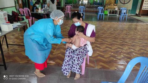 ရန်ကုန်တိုင်းဒေသကြီး၊ အရှေ့ပိုင်းခရိုင်၊ ဒဂုံမြို့သစ်(မြောက်ပိုင်း) မြို့နယ်၊ (၃၆)ရပ်ကွက်၊ သာသနာ့ရက္ခိတ ဓမ္မာရုံတွင် မွေးစမှတစ်နှစ်ခွဲအထိ ကလေးငယ်များအား ယနေ့နံနက် (၉:၀၀)နာရီက မြို့နယ်ကျန်းမာရေး ဝန်ထမ်းများက ပုံမှန်ကာကွယ် ဆေးထိုးခြင်း၊ ဆေးတိုက်ခြင်း လုပ်ငန်းများကို ဆောင်ရွက်လျက်ရှိကြောင်း သိရသည်။