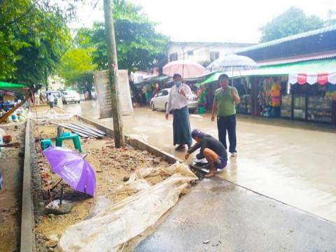 အင်းစိန်မြို့နယ်၌ လူသွားစင်္ကြန်(Platform)ပြုလုပ်ရန် ပြင်ဆင်နေသည့် လုပ်ငန်းခွင်သို့ စည်ပင် သာယာရေး ကော်မတီ ဥက္ကဋ္ဌ ကြည့်ရှုစစ်ဆေး