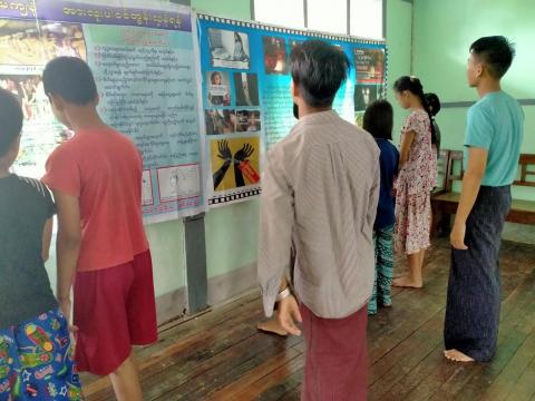 ထန်းတပင်မြို့နယ် ပြန်ကြားရေးနှင့်ပြည်သူ့ဆက်ဆံရေးဦးစီးဌာနရုံး၌ လူကုန်ကူးမှု တားဆီး ကာကွယ်ရေးဆိုင်ရာ အသိပညာပေးနံရံကပ်စာစောင်ပြသဆောင်ရွက်