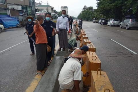 သရက်ခရိုင် ကံမမြို့တွင် ကျောက်စီမြေထိန်းနံရံ ပြုလုပ်နေမှုအား ကွင်းဆင်းစစ်ဆေး