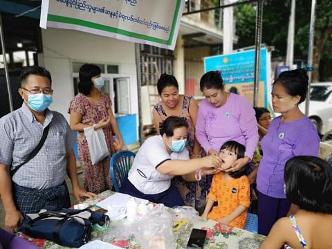 သင်္ဃန်းကျွန်းမြို့နယ်တွင် ကလေးများအား မျက်စိအားဆေးနှင့် သံချအားတိုးဆေး တိုက်ကျွေးခြင်း ကွင်းဆင်းဆောင်ရွက်
