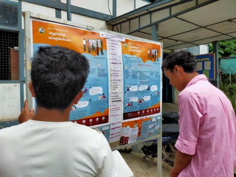 မြဝတီမြို့တွင် ရွေးကောက်ပွဲဆိုင်ရာသိကောင်းစရာများကို မြေစိုက်နံရံကပ်ပြဘုတ်တွင်ပြသထား
