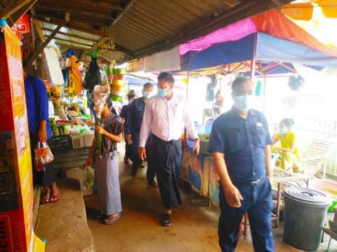 အင်းစိန်မြို့နယ်အတွင်းရှိ ဈေးများအား ကိုဗစ်-၁၉ ရောဂါ ကြိုတင်ကာကွယ်ရေးအတွက် နှာခေါင်းစည်းများ တပ်ဆင်ခြင်း ရှိ/မရှိစစ်ဆေး